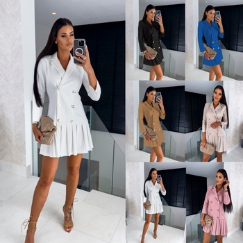 1124 plissado casaco terno botão vestido vestidos casuais mulheres senhora elegante modesto das mulheres branco roupas curtas vestidos natal malha